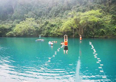 After swimming across the Thuy Tien Lake and soadking in the mud, viositors will return to another smaller zip-line and allows visitors to jump off into thge refreshing water. Dark cave where some adventurous games await...